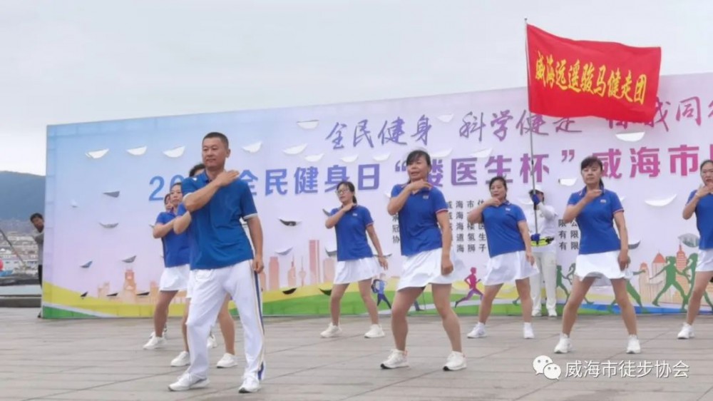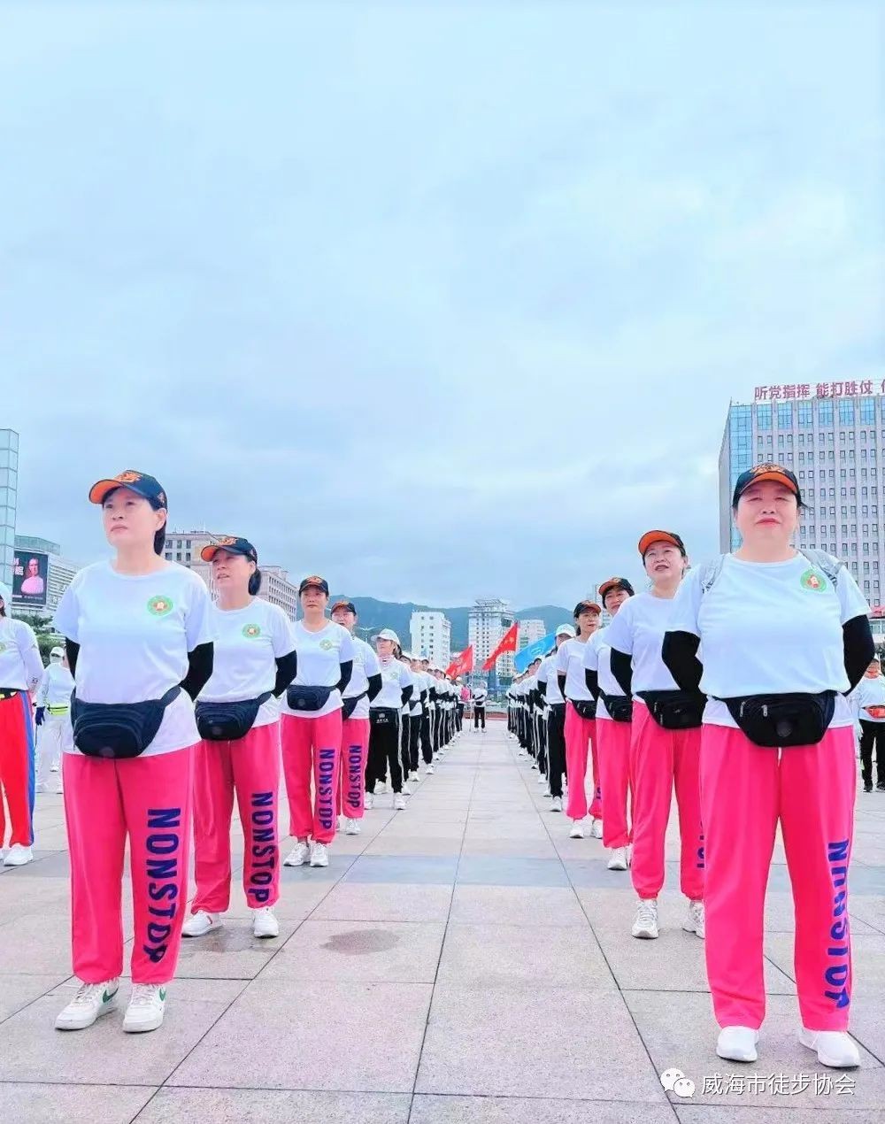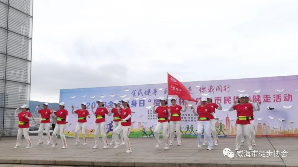 心。威海徒步協會13支健走隊齊聚幸福門廣場,舉辦2023年全民健身日活動。