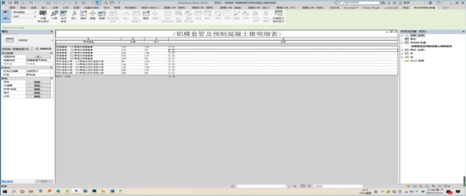 利用Revit軟件明細表功能導出第N層主輔材需求量(主要包含:預制混凝土錐、遇水膨脹橡膠塞、聚氨酯防水涂料、抗裂砂漿、雙